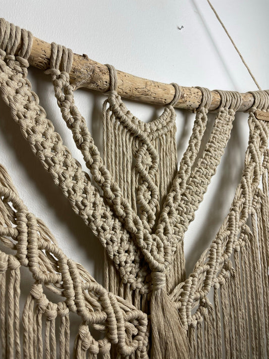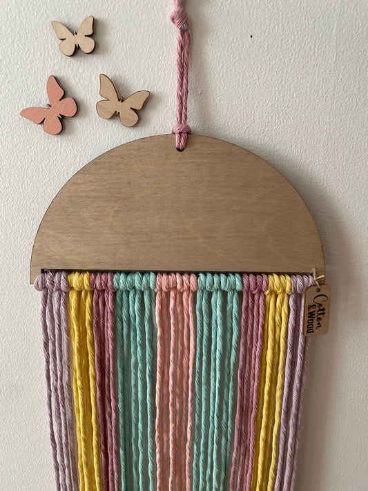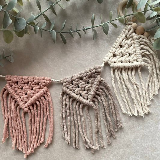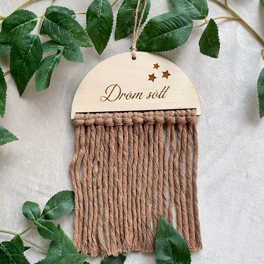 Minimalistisk väggbonad till barnrummet - handknuten makramé