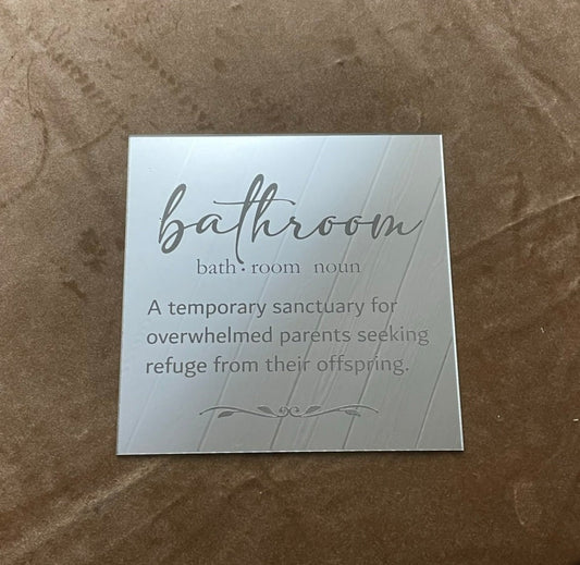 Fyrkantig spegelskylt till badrummet - Seeking refuge