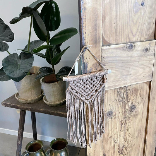 Förgyll ditt hem med vacker handknuten makramé. Vi tillverkar alltifrån nyckelband, amplar till stora väggbonader.